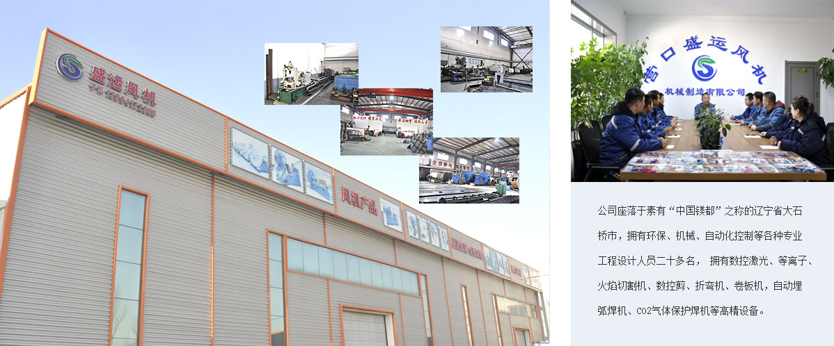 營口盛運風機機械制造有限公司是一家從事各類風機機械、除塵系統(tǒng)的研發(fā)、設計、制造為主的專業(yè)生產(chǎn)企業(yè)。公司座落于素有“中國鎂都”之稱的遼寧省大石橋市, 公司始建于1992年,擁有環(huán)保、機械、自動化控制等各種專業(yè)工程設計人員二十多名,擁有數(shù)控激光、等離子、火焰切割機、數(shù)控剪、折彎機、卷板機,自動埋弧焊機、CO2氣體保護焊機等高精設備。主要產(chǎn)品有高中低壓離心通心機、高壓小流量離心通風機、高溫風機、排塵風機、軸流風機、陶瓷窯爐風機、鋁材窯爐風機、鎂質(zhì)品專用風機等二十多個系列三百多種規(guī)格及上百種非標產(chǎn)品。廣泛應用于機械、化工建材、爐窯冶金、輕工、鑄造、服務行業(yè)。 |